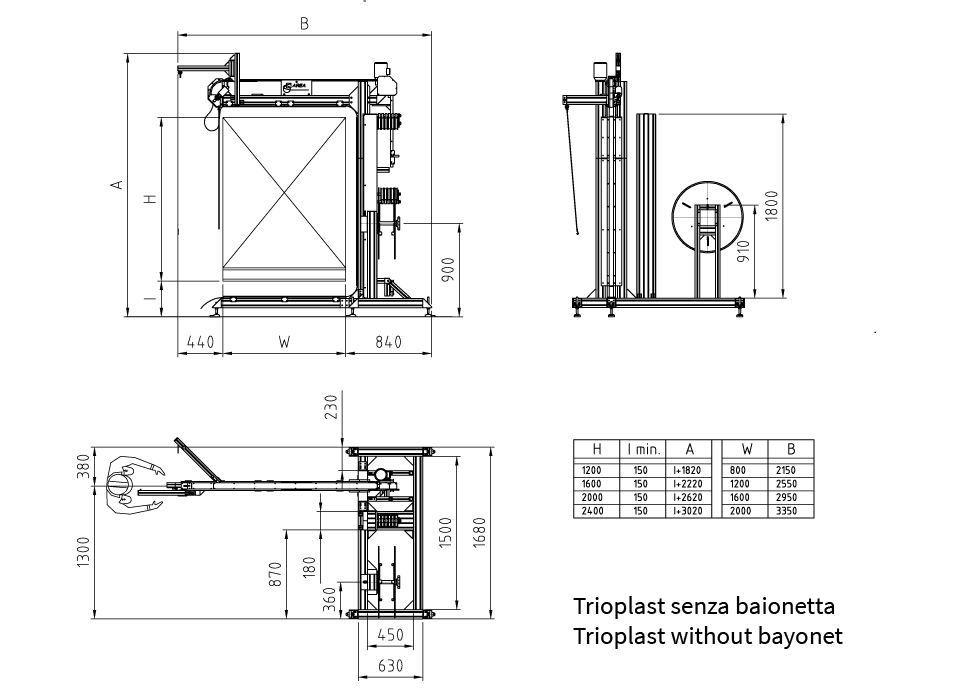 高度(毫米) 800 – 1200 – 1600 – 2000 – 2400