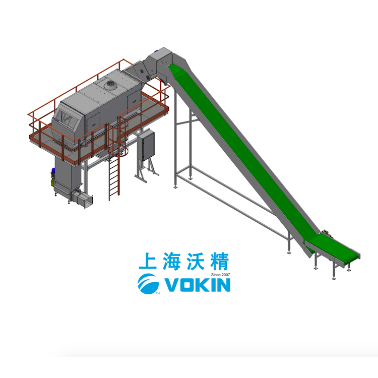 通過(guò)由袋/產(chǎn)品因子和旋轉(zhuǎn)滾筒配置的切割部分,分離過(guò)程中,產(chǎn)品在收集料斗中輸送,然后氣動(dòng)或機(jī)械輸送。用螺旋進(jìn)料器或液壓機(jī)壓實(shí)空袋。