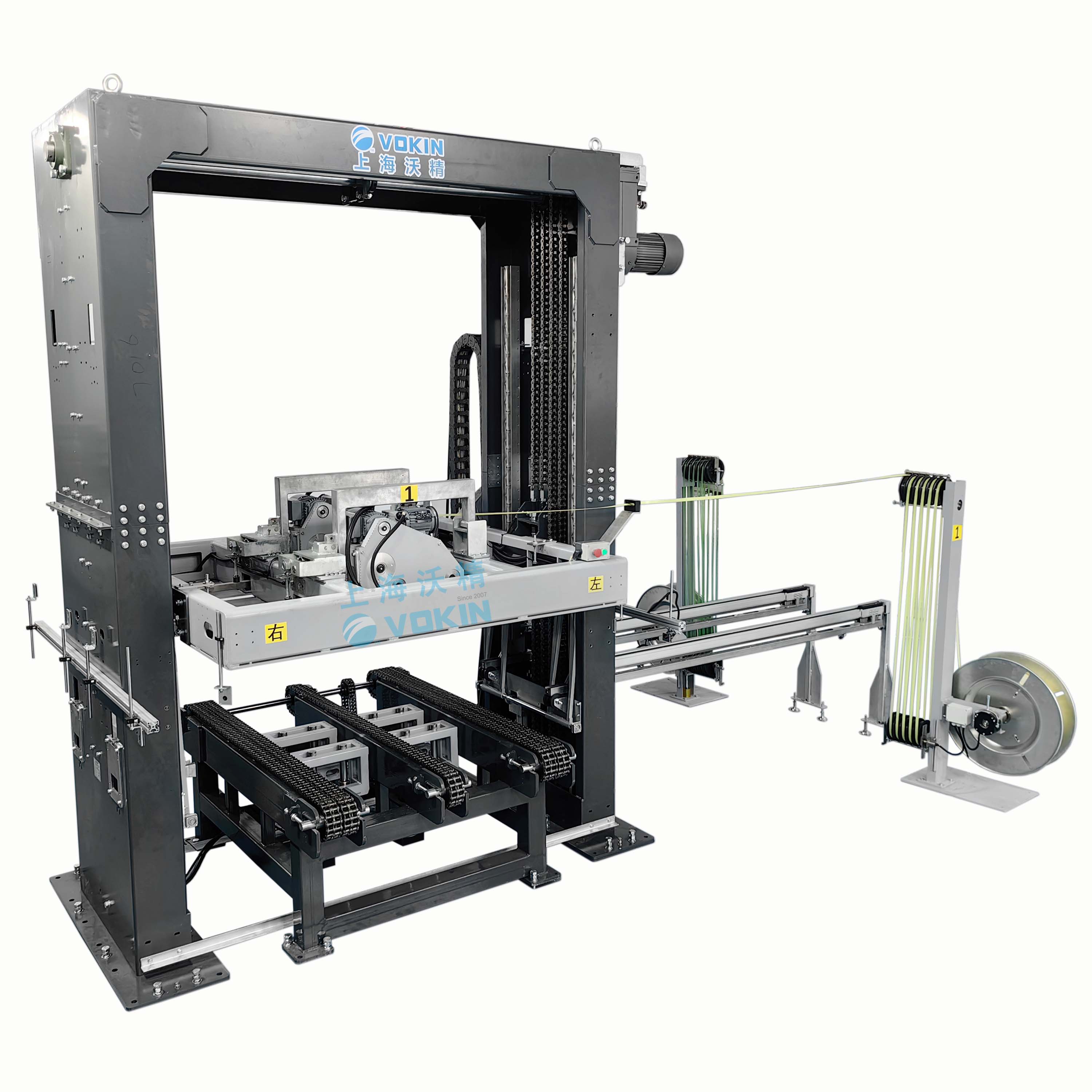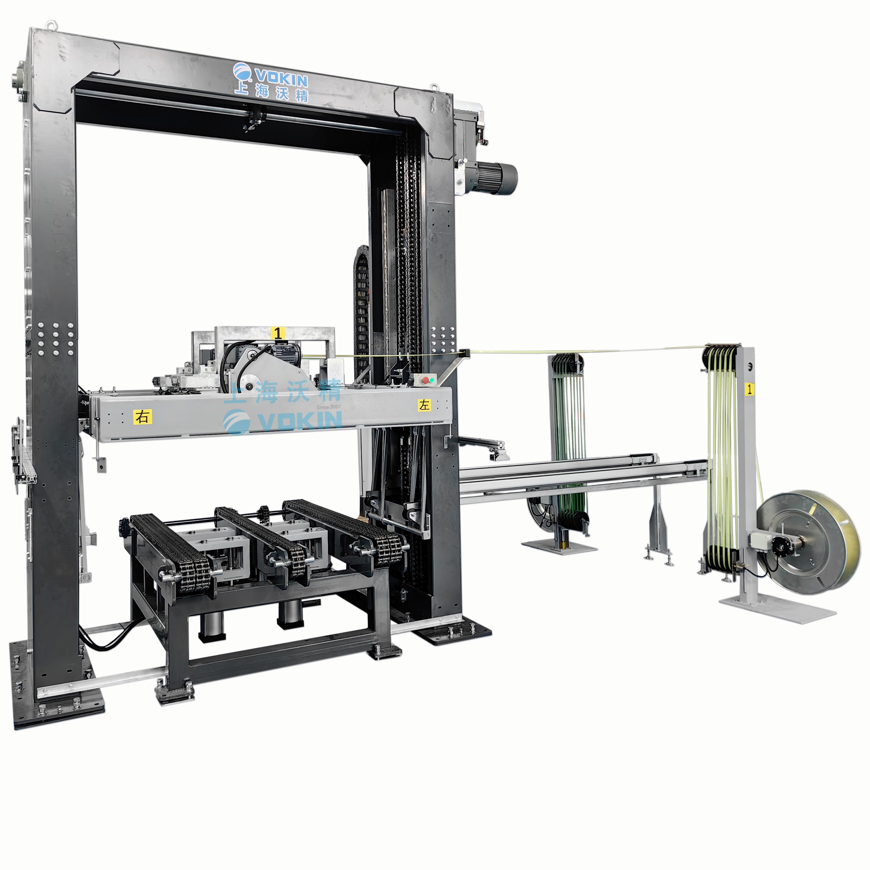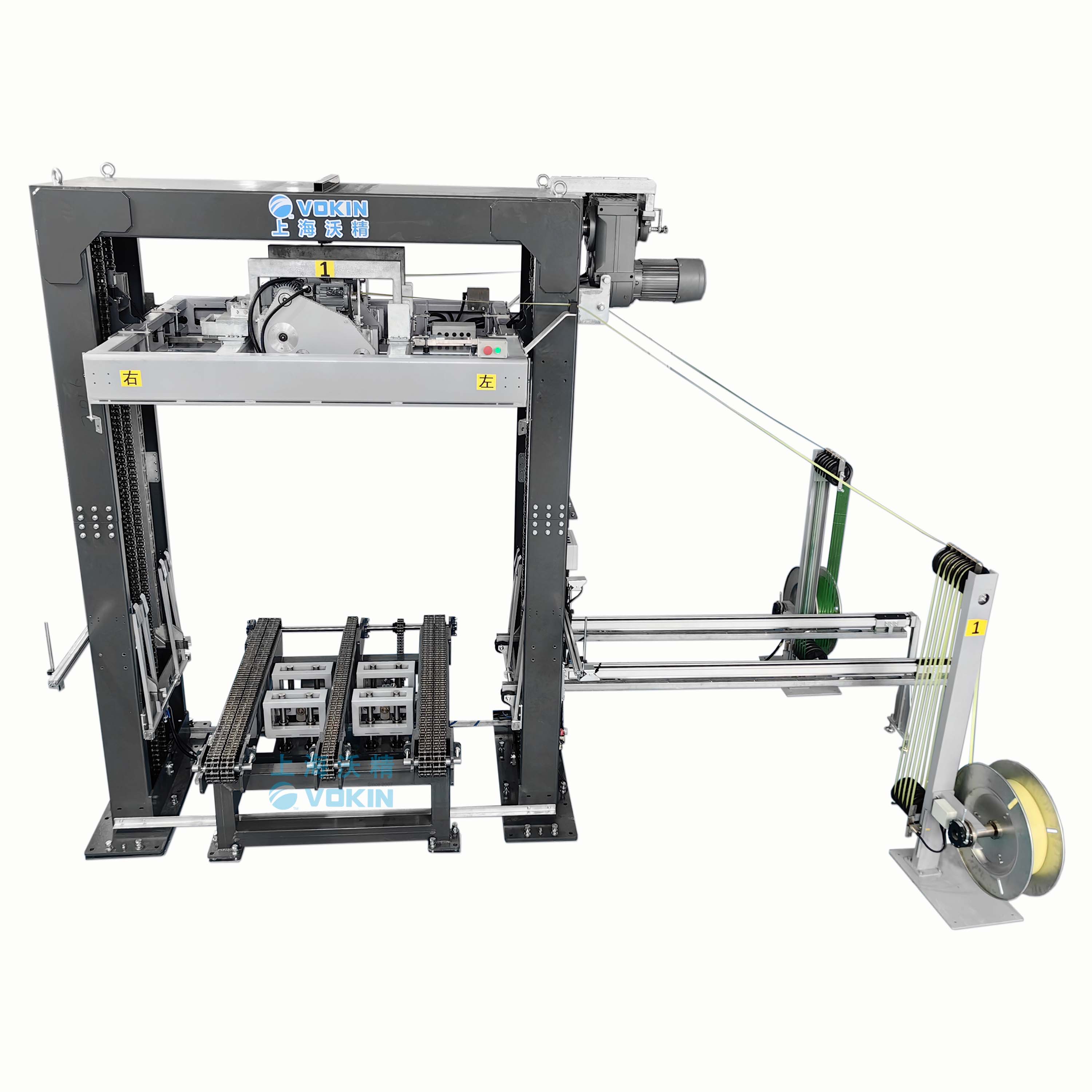 VKP-2TL 是一款全自動雙機頭重加壓打帶機,可以先對貨物施加壓力后,再進行兩根帶子打包