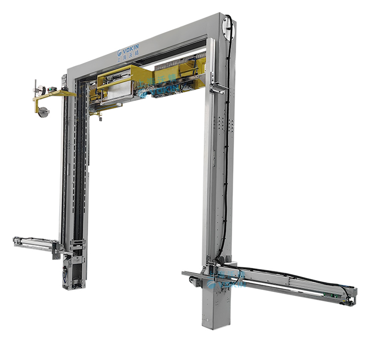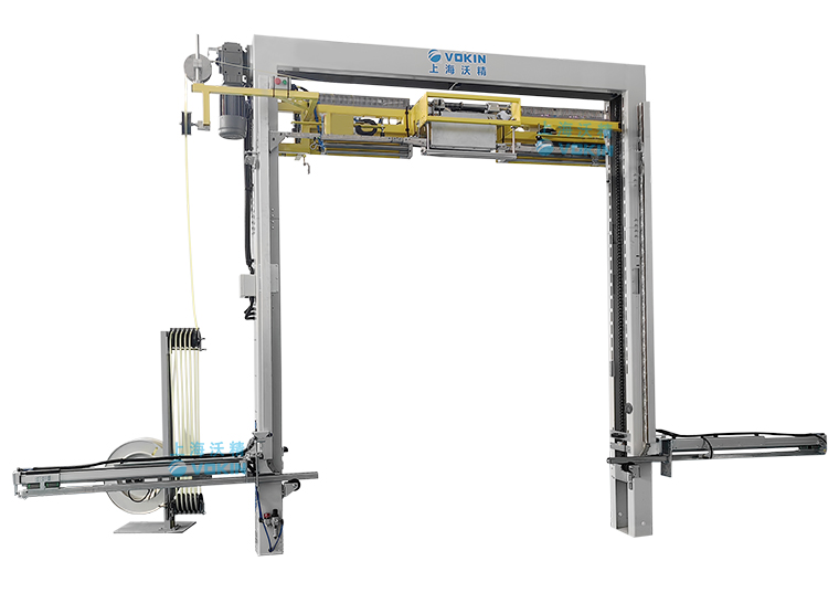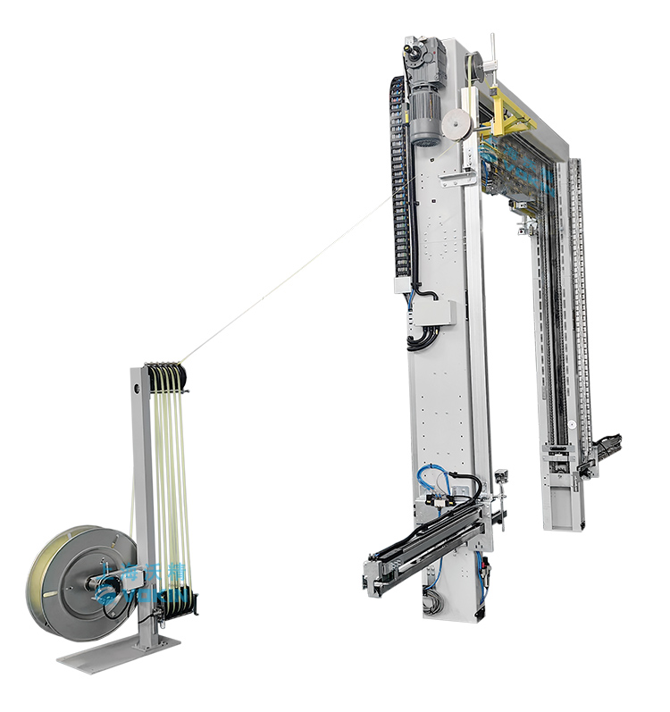 移動(dòng)式打帶機(jī)可以自動(dòng)尋找打帶位置并且配合打帶機(jī)底部的旋轉(zhuǎn)臺輸送機(jī),可以完成井字型打帶。